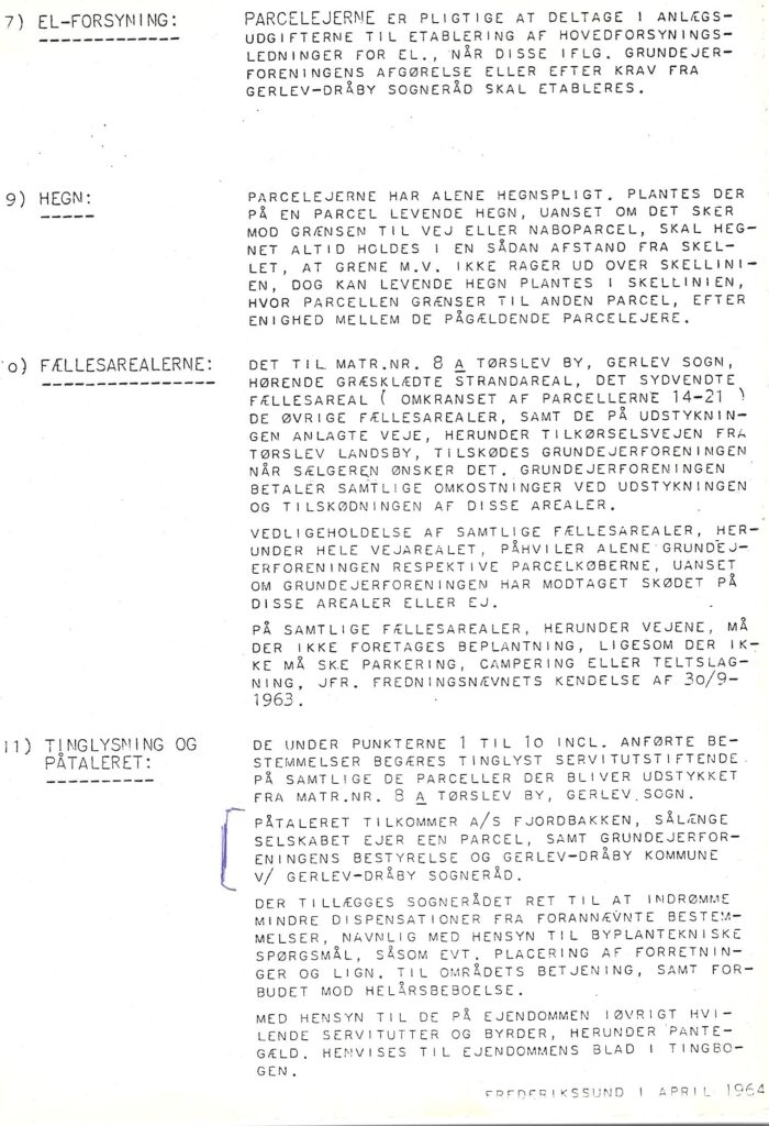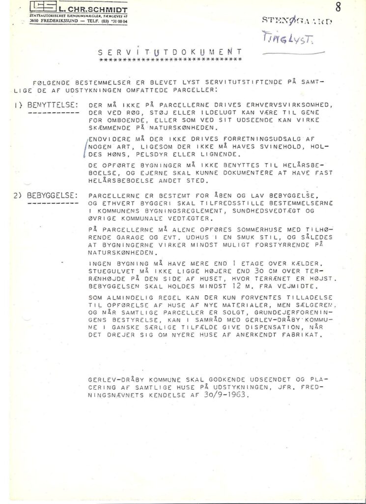 Dette er kopi af servitutterne ses her som reference, de præcise servitutter findes ved opslag på tinglysning.dk på de enkelte matrikler – og burde være udleveret ved boligkøb
